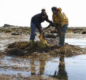 Marinoë: Les récoltes se font en fonction du calendrier des marées, et des périodes de récoltes. En gros, nous ramassons les algues quelques jours par mois de mars à décembre suivant les espèces.