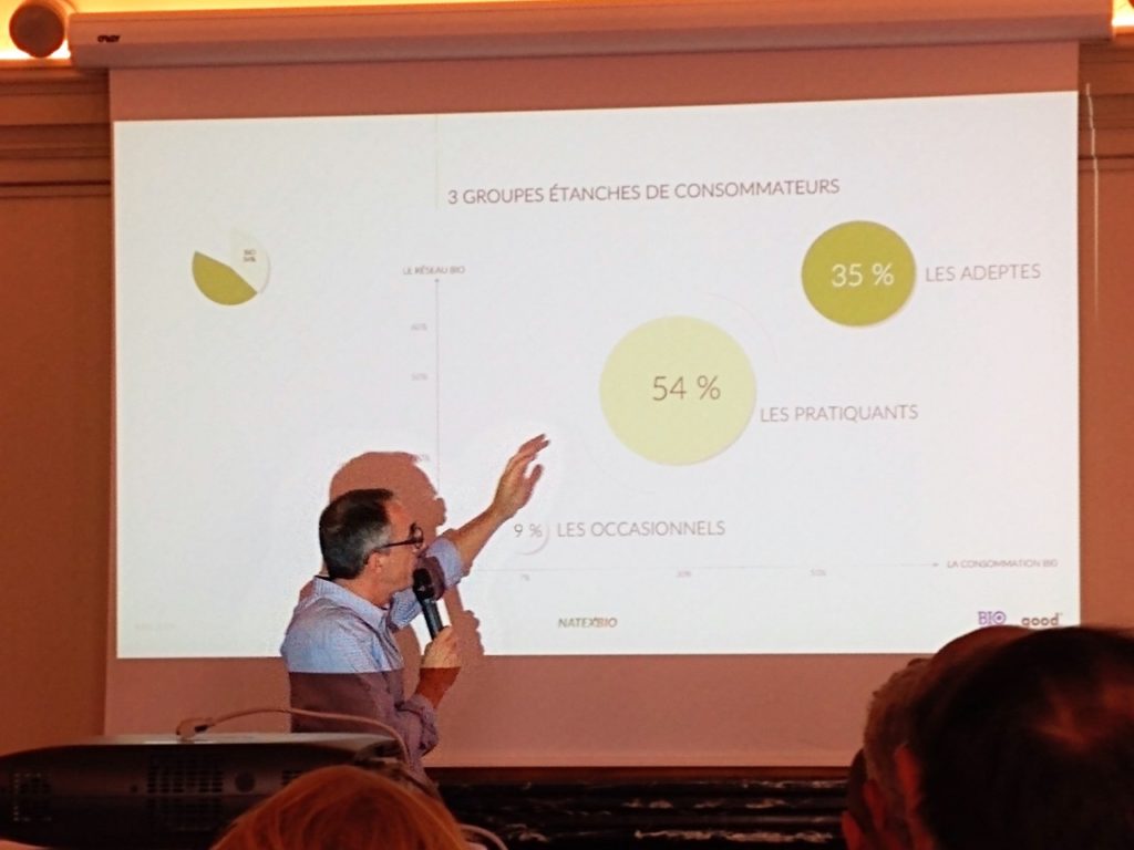 - Les « pratiquants », qui représentent 54% de la clientèle, sont la nouvelle génération qui est en migration du réseau conventionnel vers le réseau spécialisé suite, notamment, aux différentes crises sanitaires. Ils représentent « le socle de votre avenir ». Ce sont les consommateurs qui, pour des raisons de santé, de crises alimentaires ou encore de premier enfant, commencent à fréquenter les réseaux spécialisés pour mieux consommer, pour la sécurisation. Ils ont une sensibilité au prix plus importante car ils sont habitués au conventionnel, mais ne sont pas opposés à payer plus cher si on leur explique : ils ont un besoin de comprendre. Ils continuent en revanche à fréquenter l’ensemble des réseaux : leurs actes d’achats sont segmentés en fonction de leurs besoins. Ils sont plus réceptifs à une campagne de communication, au positionnement d’une enseigne et consomment bio pour leur santé, leur sécurité, avant la planète.