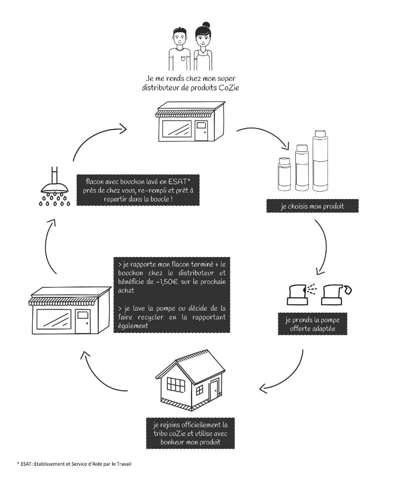 Arnaud Lancelot : CoZie ce sont des cosmétiques biologiques proposés en flacons en verre consignés, et donc réutilisables à vie.