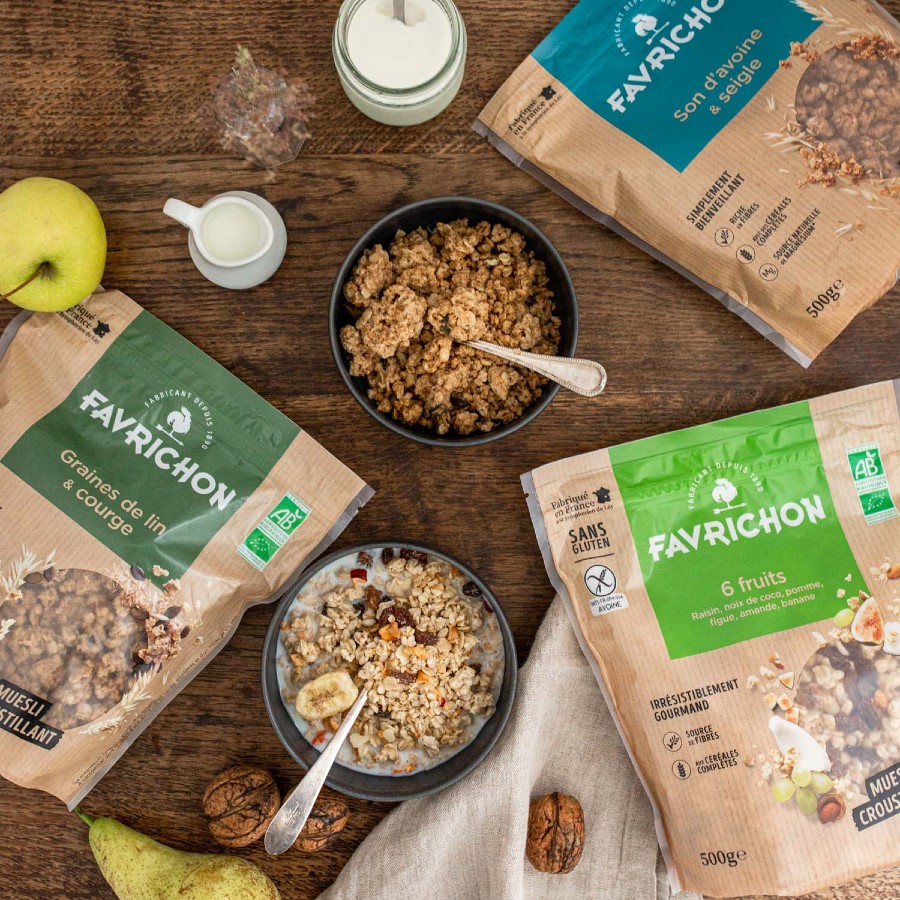 Nous avons une gamme de mueslis conçus pour ce canal de distribution, sous la marque « Charles Vignon ». Ces produits, vendus à un prix juste et équitable par rapport au réseau spécialisé, dont différents de leur équivalent en MSB : la recette, le packaging et la marque diffèrent.
