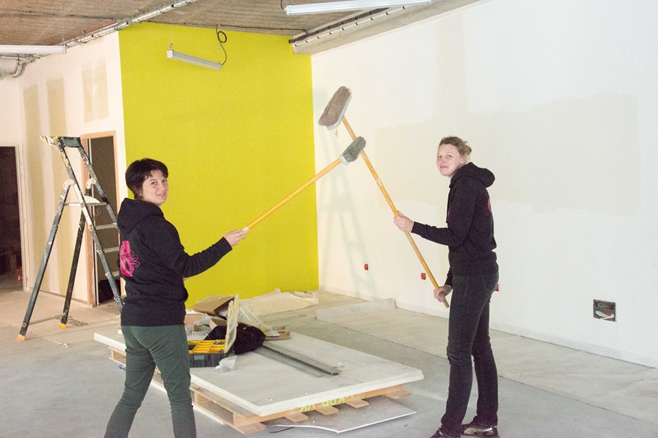 L’équipe Rose Betterave en plein travaux dans son futur magasin Bio.