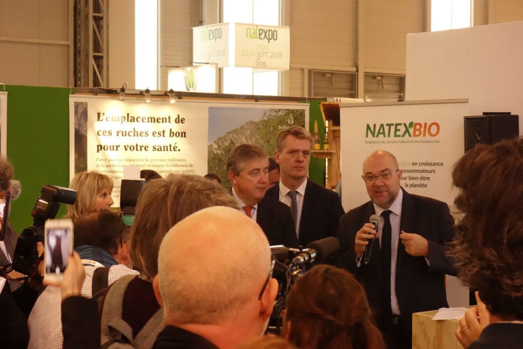 Ce lundi 23 octobre, l’atmosphère était à l’optimise à Natexpo, salon professionnel international des produits bio. Pour cause, le secteur est en forme olympique avec une croissance de 22% en 2016 et des achats consommateurs de 7 milliards d’euros. Des résultats qui ont suscité la visite de Stéphane Travert, Ministre de l’Agriculture et de l’Alimentation : « Natexpo est un salon important qui se déploie comme se développe la production bio sur notre territoire », a déclaré le Ministre sur le stand de la fédération des transformateurs et distributeurs bio Natexbio. Pour la première fois depuis sa création, en la personne de Benoît Soury, Président de Natexbio et de Patricia Berthomier-Massip, Présidente du Groupe Spas Organisation, le salon accueillait la visite officielle d’un membre du gouvernement.