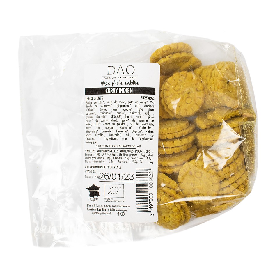Trophée Argent : Sablés apéritifs DAO – Curry Indien pimenté BIOTOBIO