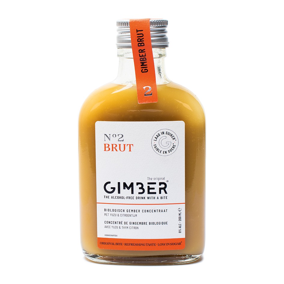 GIMBER n°2 Brut est un concentré de gingembre bio, sans alcool, avec du yuzu et du thym citronné, deux fois moins sucré que la version originale, emblématique de GIMBER.