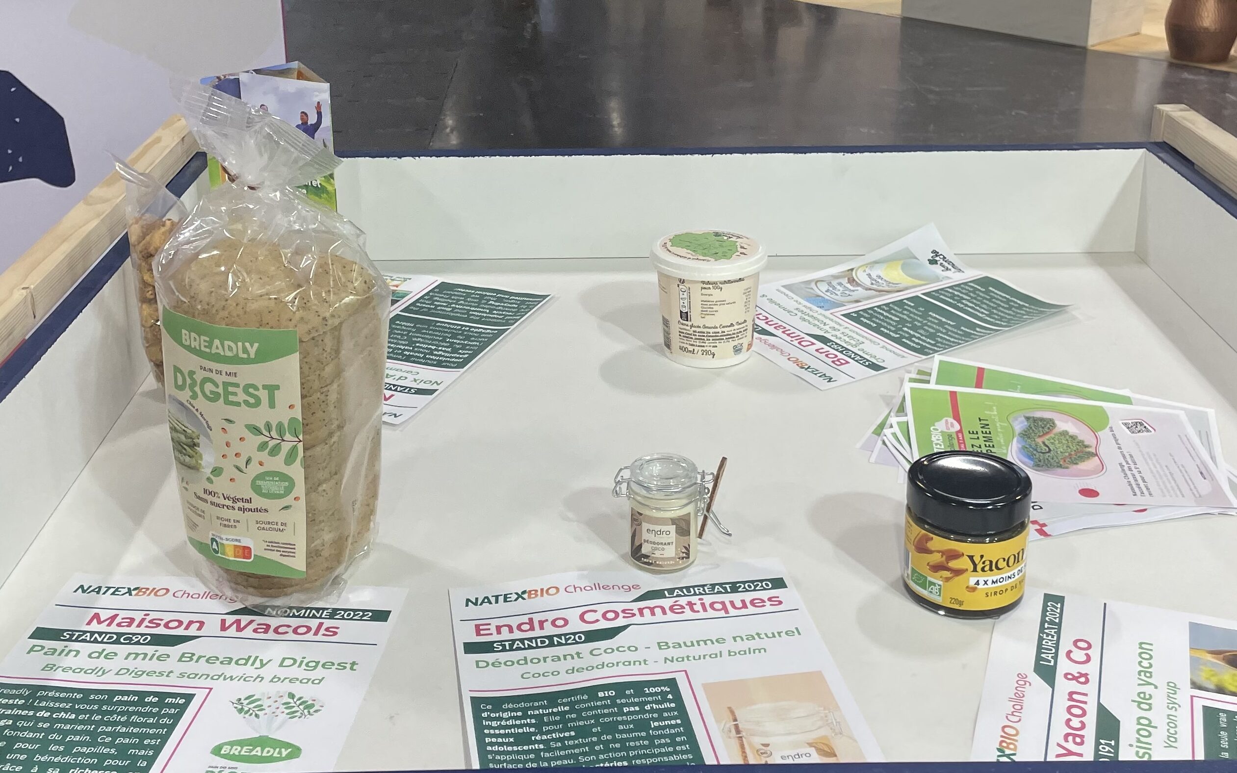 Leurs produits étaient également exposés sur le corner Natexbio Challenge, sur le stand de La Maison de la Bio / Natexbio.