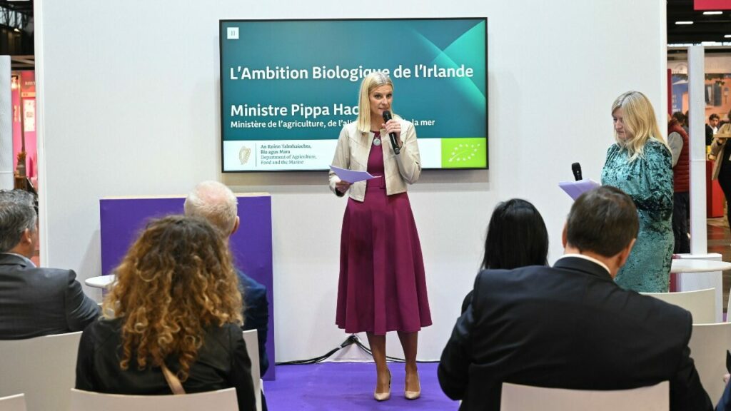 À 49 ans, Pippa Hackett est plus précisément ministre déléguée à la biodiversité depuis 2020. Sénatrice du Green Party, elle est également à la tête d’une exploitation agricole bio avec son mari où l’on élève des vaches allaitantes, des moutons, des poules et des chevaux. Diplômée d’agriculture à l’université d’Essex en Angleterre, Pippa Hackett maîtrise son sujet et se bat en politique pour la défense des agriculteurs, de l’environnement et du bien-être animal. Une volonté qui se traduit par la plus grande campagne promotionnelle de l’agriculture bio en Irlande en cette fin d’année : un million d’euros pour communiquer sur TikTok, YouTube, à la radio et dans les villes autour du slogan « more-ganic » (« plus de bio ») à destination des 24-44 ans. À cela s’ajoute la première délégation irlandaise au salon Natexpo avec neuf exposants.